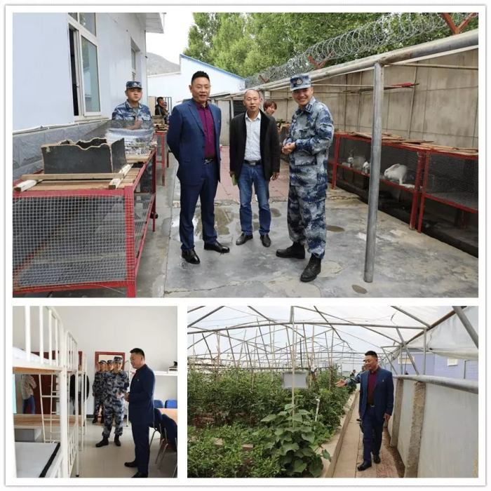 參觀養(yǎng)殖基地、蔬菜大棚及官兵宿舍