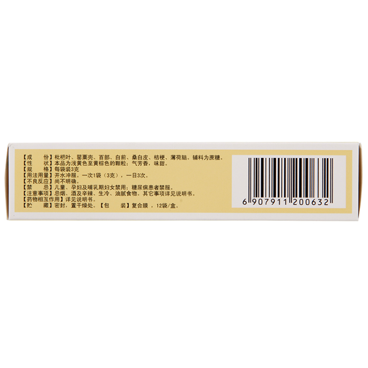 【主要成份】枇杷葉、百部、白前、桑白皮、桔梗、薄荷腦、罌粟殼。