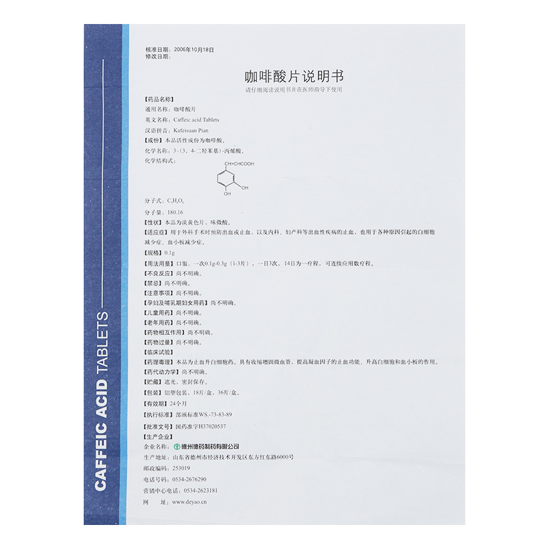 通用名稱:咖啡酸片