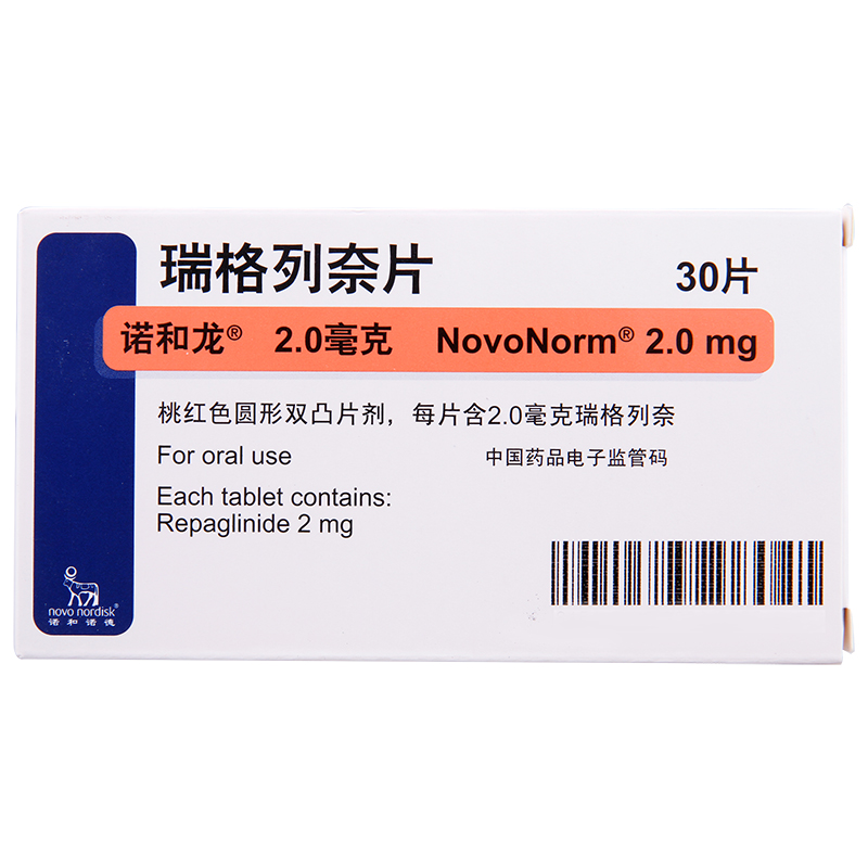 【禁忌】1.已知對瑞格列奈或諾和龍瑞格列奈片中的任何賦型劑過敏的患者,2.1型糖尿病患者(胰島素依賴型,IDDM)。3.伴隨或不伴昏迷的糖尿病酮癥酸中毒患者。4.妊娠或哺乳婦女。 5.8歲以下兒童。6.嚴重腎功能或肝功能不全的患者。7.與CYP3A4抑制劑或誘導劑合并治療時。